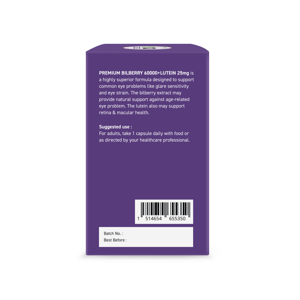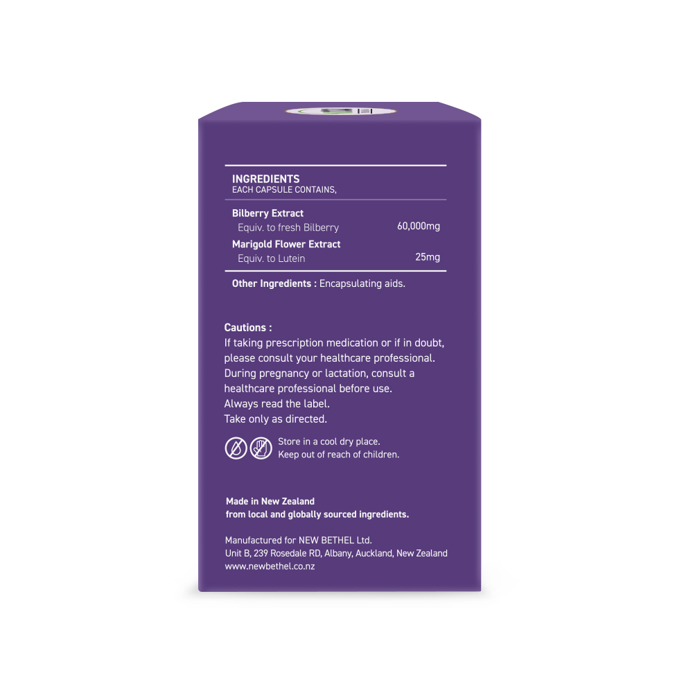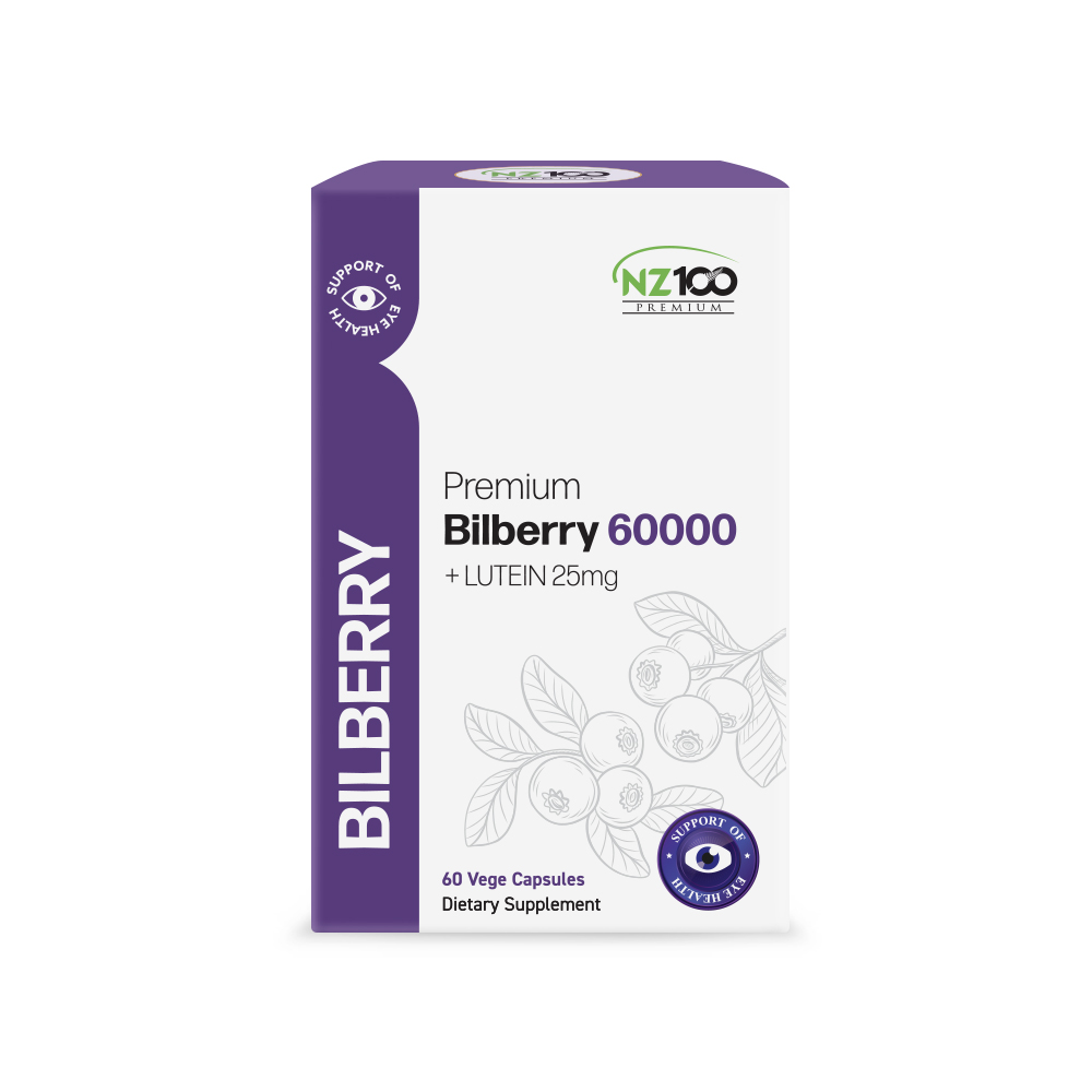 NZ100 Premium Bilberry 60000 + Lutein 25mg is a highly superior formula designed to support common eye problems like glare sensitivity and eye strain. The bilberry extract may provide natural support against age-related eye problem. The lutein also may support retina & macular health.