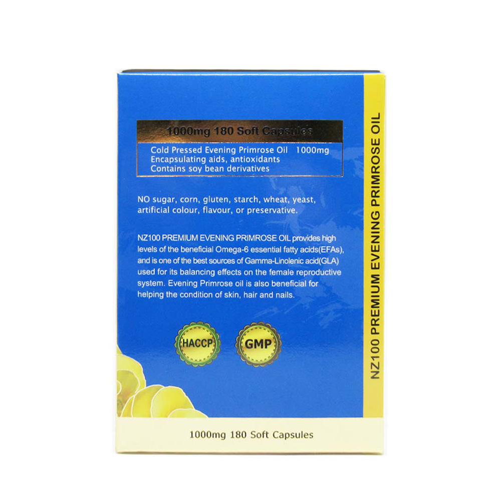 NZ100 Premium Evening Primrose Oil provides high levels of the beneficial Omega-6 essential fatty acids(EFAs), and is one of the best sources of Gamma-Linolenic acid (GLA) used for its balancing effects on the female reproductive system. Evening Primrose oil is also beneficial for helping the condition of skin, hair and nails.