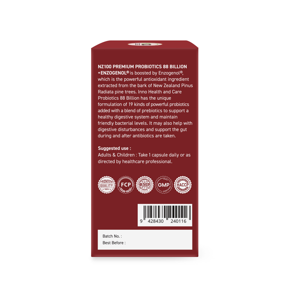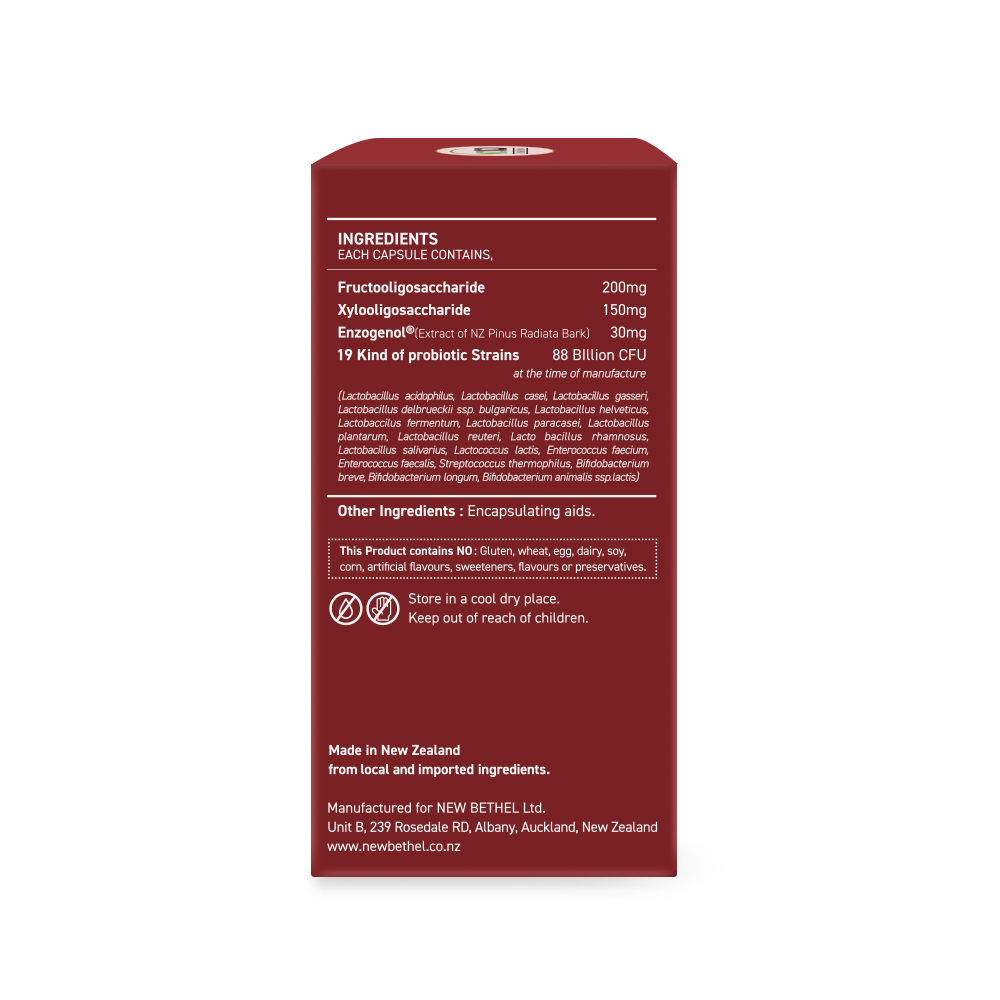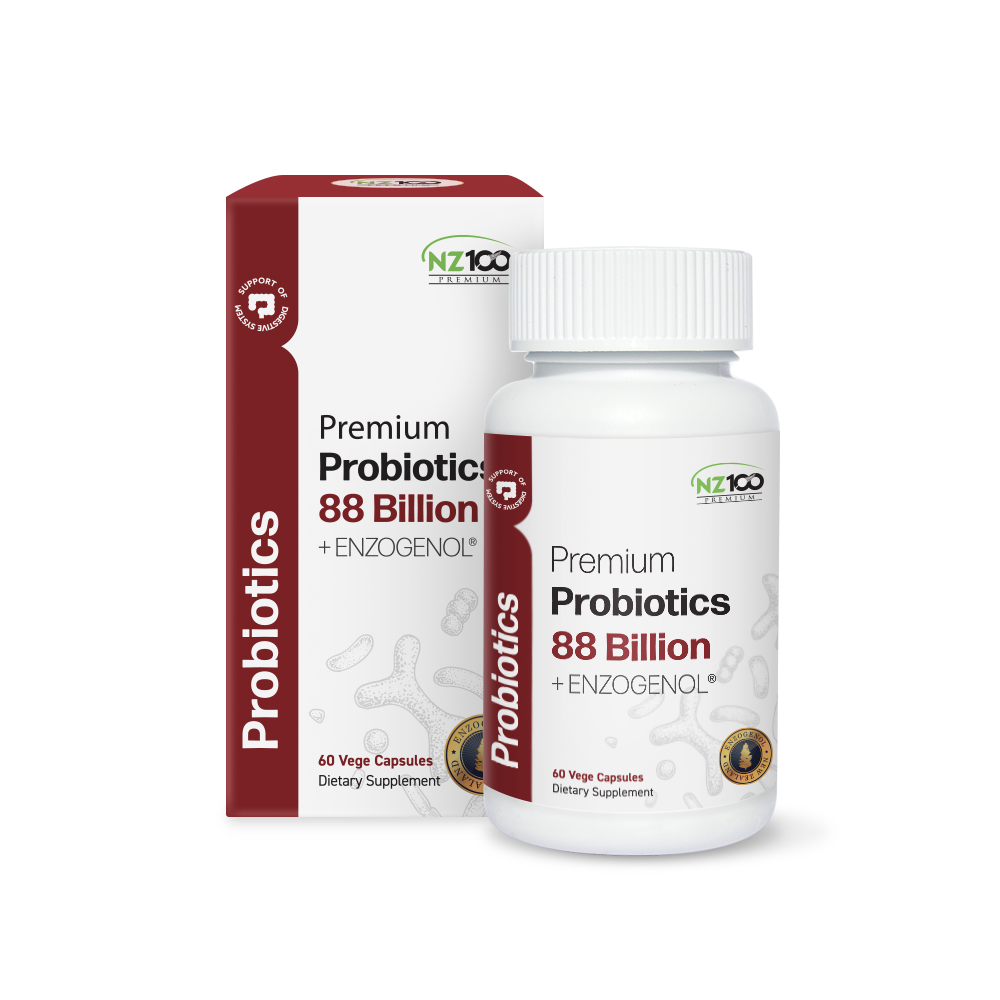 NZ100 Premium Probiotics 88 Billion+ENZOGENOL® is boosted by Enzogenol®, which is the powerful antioxidant ingredient extracted from the bark of New Zealand Pinus Radiata pine trees.